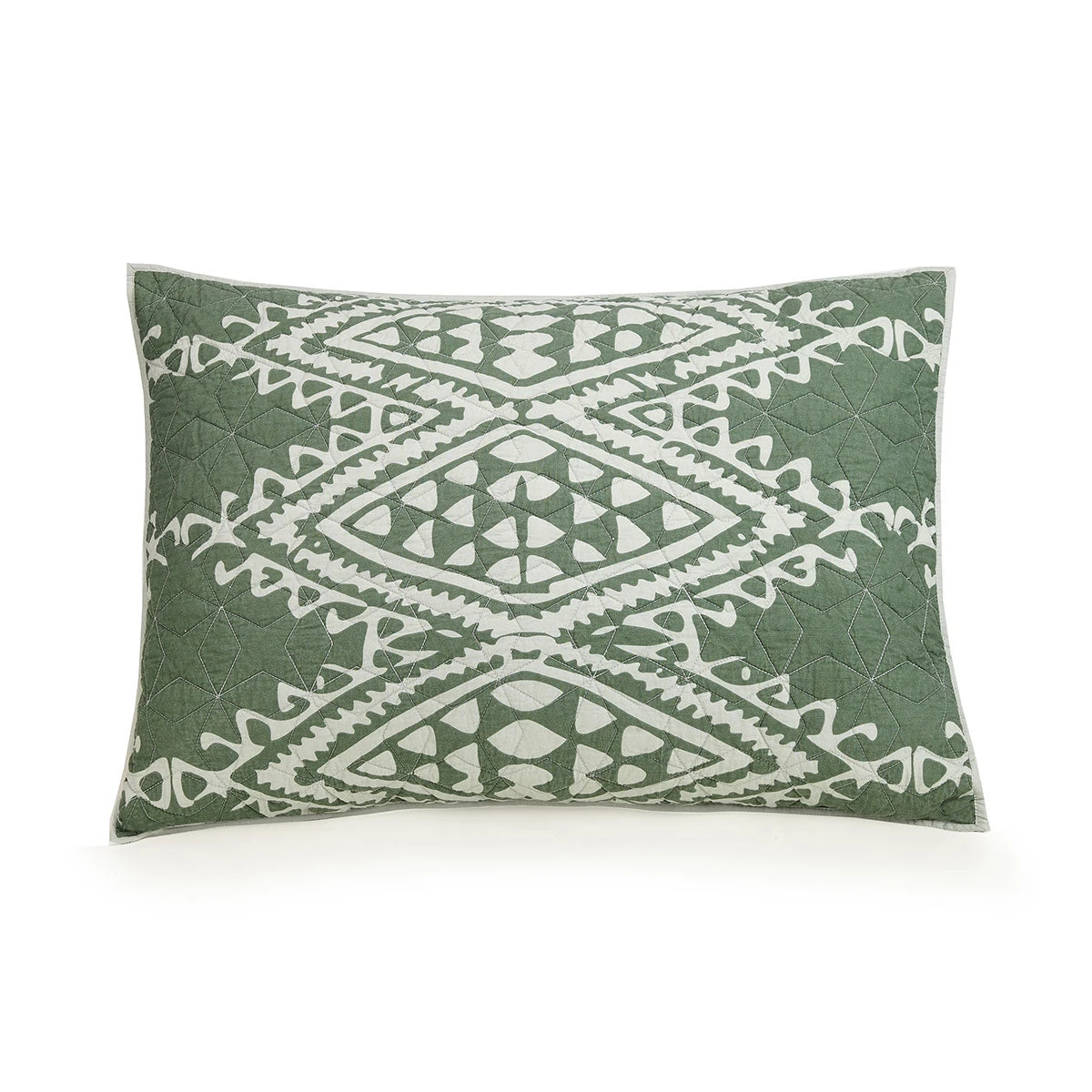 Vintage textile lovers, this one’s for you! Our Aisha Quilt Set features a gorgeous geometric pattern that is inspired by the motifs found on various vintage textiles. The mellow shade of sage green is accented with a soft, pale gray for the ultimate evergreen color combo. For all the jungalicious vibes, layer on colorful throw pillows and don’t forget to sprinkle in lots of planties, too!