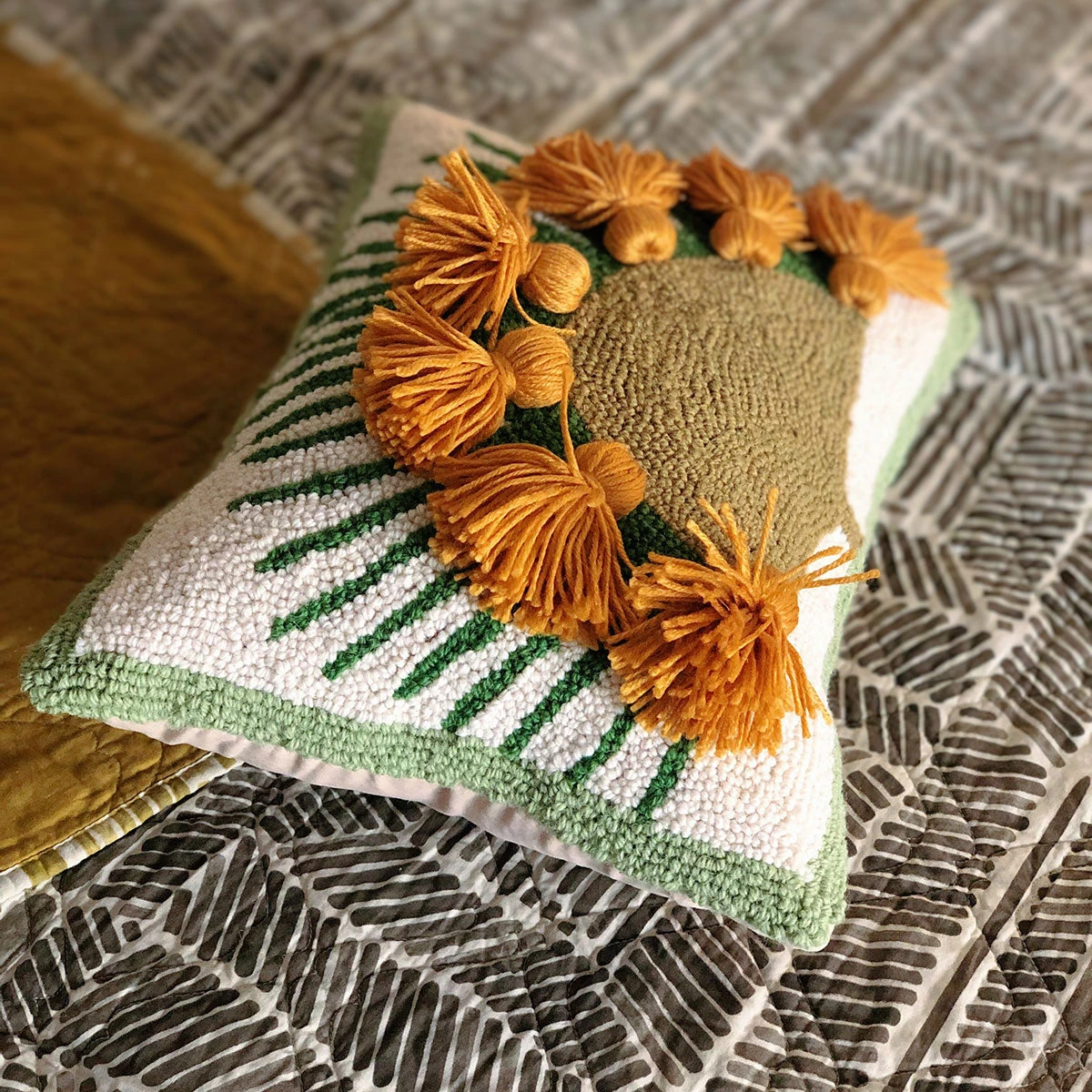 Designed by Justina Blakeney®, the Nilo Hook pillow design is a playful take on the fan palm. We’re obsessed with all things tassel-ly around here and the Nilo pillow will give you a good tassel fix!
