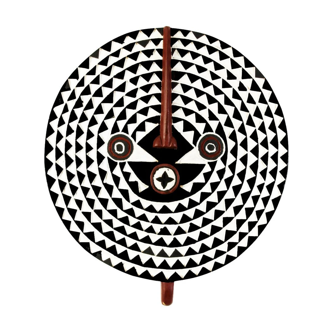 Hand carved by Bwa artisans living in Ghana, these beautiful sun masks are inspired by elements of traditional Bwa (Bobo) ceremonial masks and art. Representing the sun, these iconic masks make stunning modern African wall art.